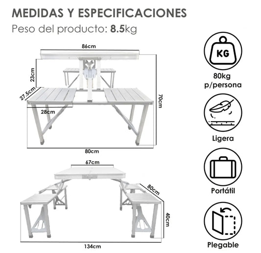 Mesa Plegable tipo Portafolio para Jardín 1.8 Metros