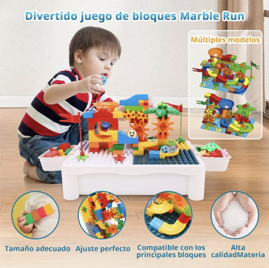 Mesa de juegos y bloques con silla y bloques