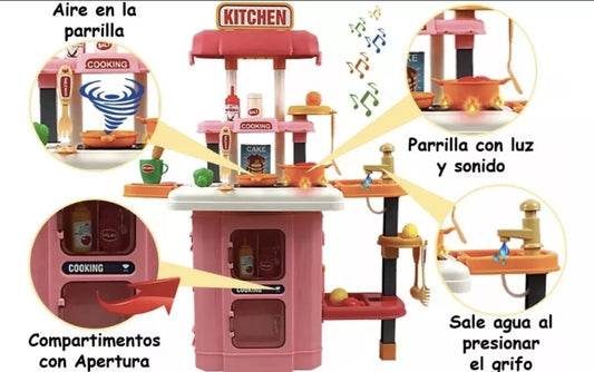 Juguete de cocina 43 piezas con luz, sonido, agua, vapor y spray