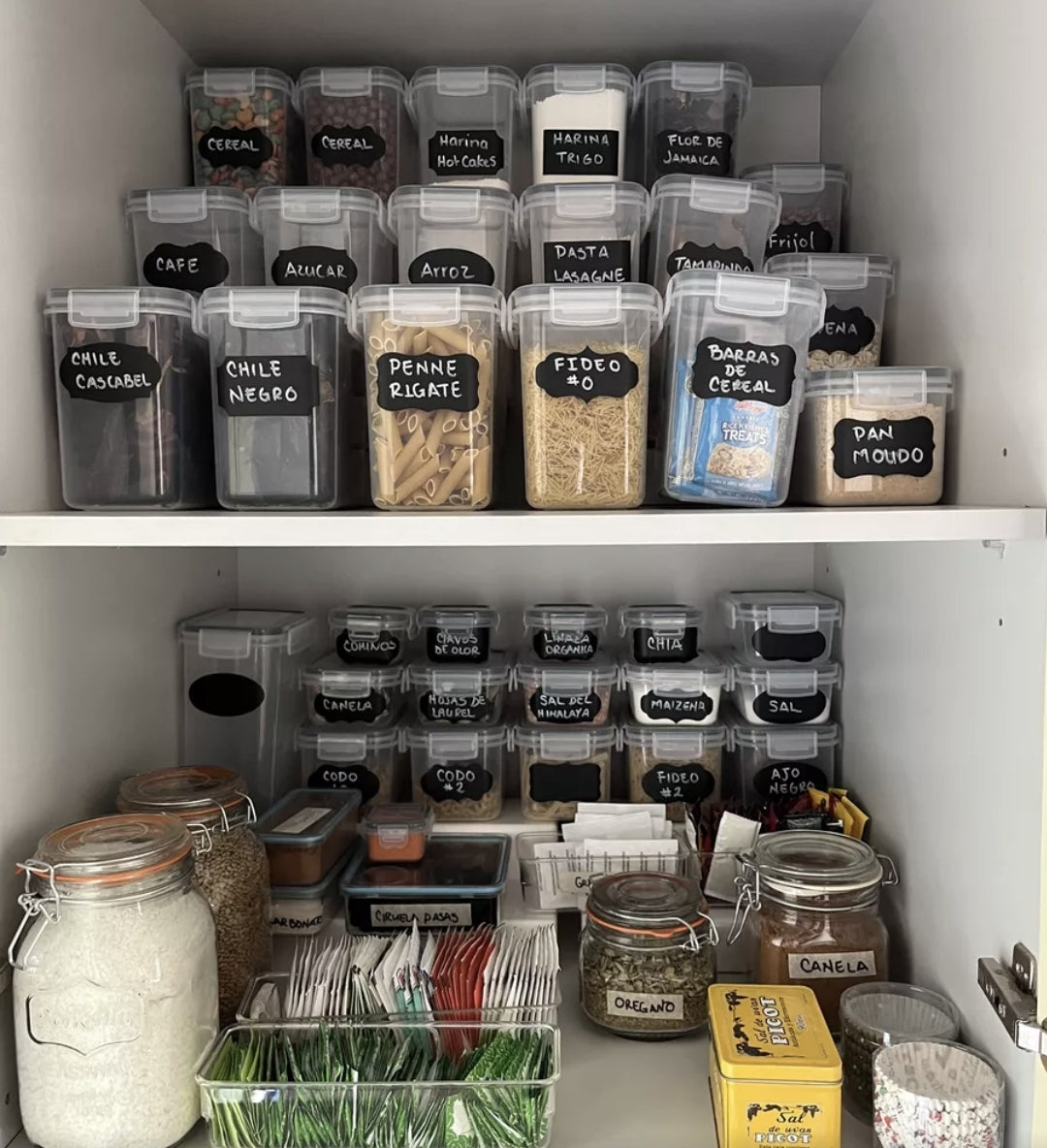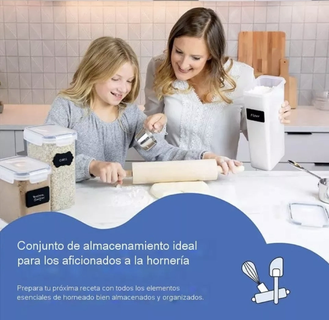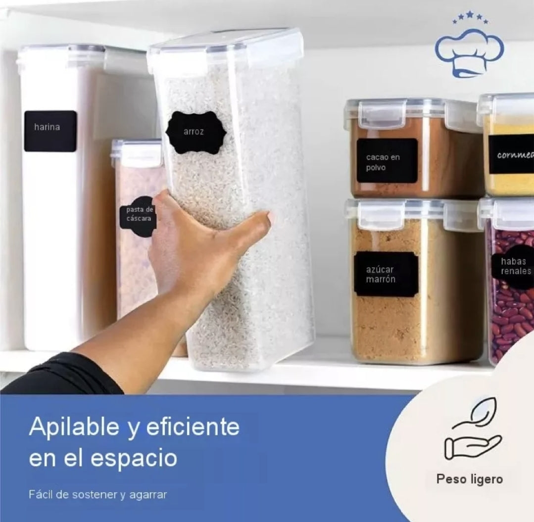 Diseñados con la finalidad de ahorrar espacio y apilables para que de esta forma puedan caber sin problema en tu alacena, refrigerador nevera o en donde tu decidas colocarlos, pueden mantener frescos tus alimentos secos por un buen tiempo, cuentan con un sistema de bloqueo de 4 lados que mantienen las cosas herméticas aprueba de fugas, perfecto para guardar harina, azúcar, snacks, botanas, café, cereales, pasta, frutos secos y mucho más