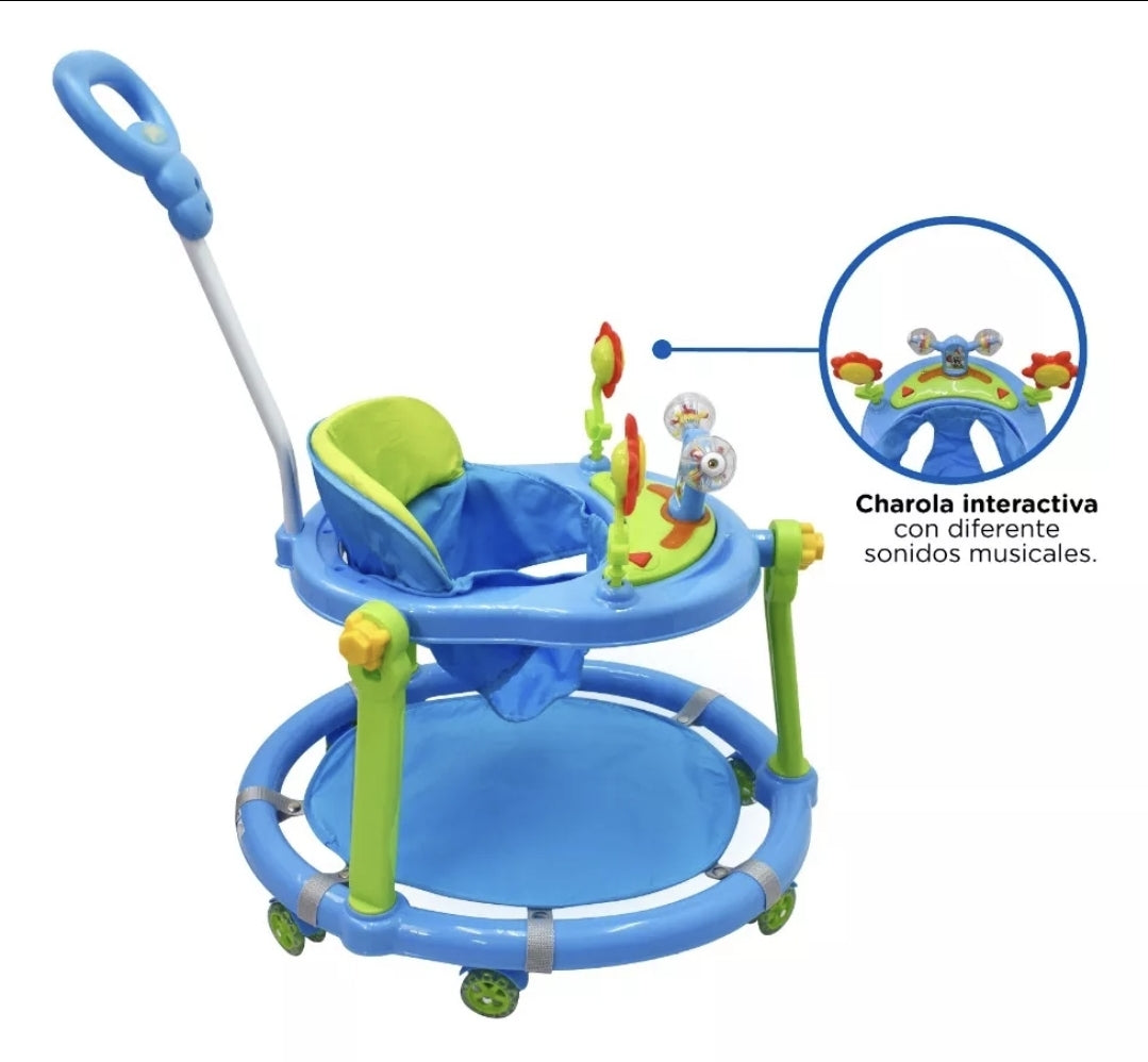 La andadera para bebé cuenta con una charola interactiva con diferentes sonidos musicales para mantener al pequeño entretenido mientras aprende a caminar.