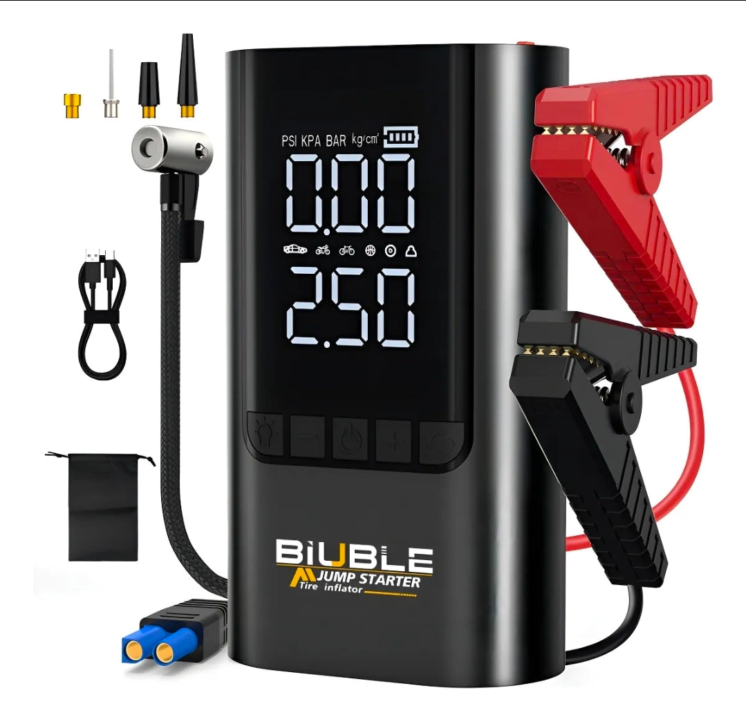 Este arranque portátil de alta-performance BIUBLE BR12 puede generar una corriente pico de hasta 8500 amperios, lo que le permite arrancar en cuestión de segundos cualquier motor de gasolina y cualquier motor diésel de hasta 10,0 litros. Funciona perfectamente en condiciones extremas, ya sea en un frío intenso de -20C (equivalente a -4F) o en un calor sofocante de 60C (140F). Ya sea que tenga un automóvil familiar, un camión pesado, una motocicleta o un SUV, este arranque portátil le brindará un apoyo confiable para el arranque, asegurándose de que no se vea impedido por problemas de energía en cualquier emergencia.