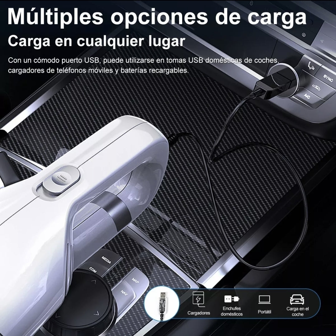 Aspirador doméstico: 12.000 Pa de potente potencia de succión, con diferentes boquillas, limpieza a fondo. No sólo para coches, también se recomienda su uso en casa o en la oficina. Después de instalar la manguera de extensión y la boquilla cerrada, simplemente puede limpiar toda la habitación sin escurrir la cintura. Adecuado para azulejos o alfombras, diseño de carga inalámbrica, sin ataduras de cables, sin restricción de la distancia a la que se puede utilizar la aspiradora, quítese la preocupación de los cables largos, fácil de usar.