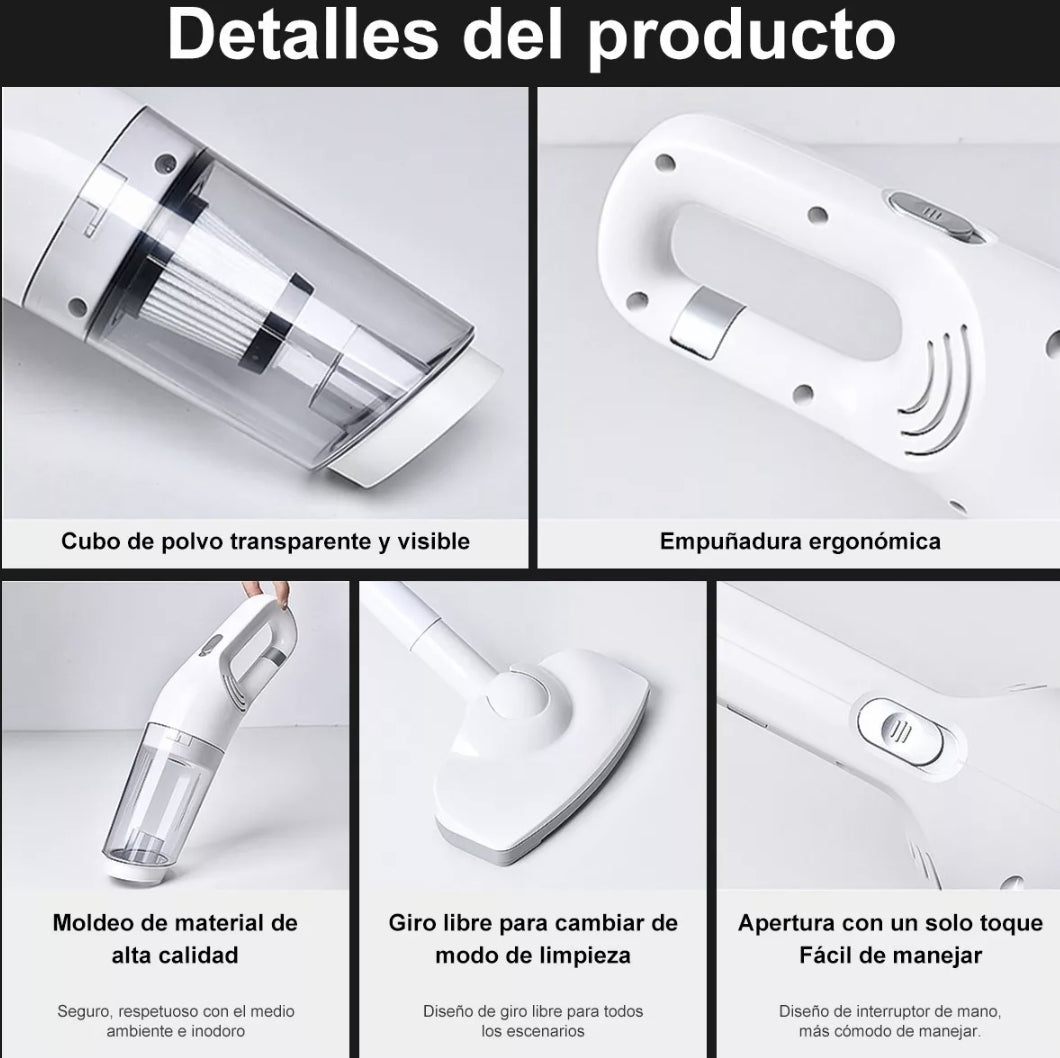 Potente y bajo ruido: Equipado con motor de alto rendimiento de 120W de salida grande, sin potencia de amortiguación, el motor no se calentará, puede eliminar eficaz y rápidamente el polvo persistente. Polvo fino, vidrio, grava, arena, teclados de computadora, pelo de mascotas, polen, asientos de automóviles en las grietas entre las depresiones de alimentos, etc. Ruido dentro de 50db, no hay ruido al limpiar, se puede utilizar con confianza.