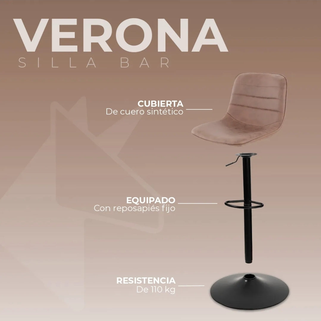 Dale un toque de elegancia y confort a tu hogar con la Silla Bar Verona. Con su asiento acolchado y respaldo de poliéster, ofrece comodidad y un diseño minimalista que se adapta a cualquier espacio. Su base ajustable permite regular la altura, brindando estabilidad y estilo en cada uso.
