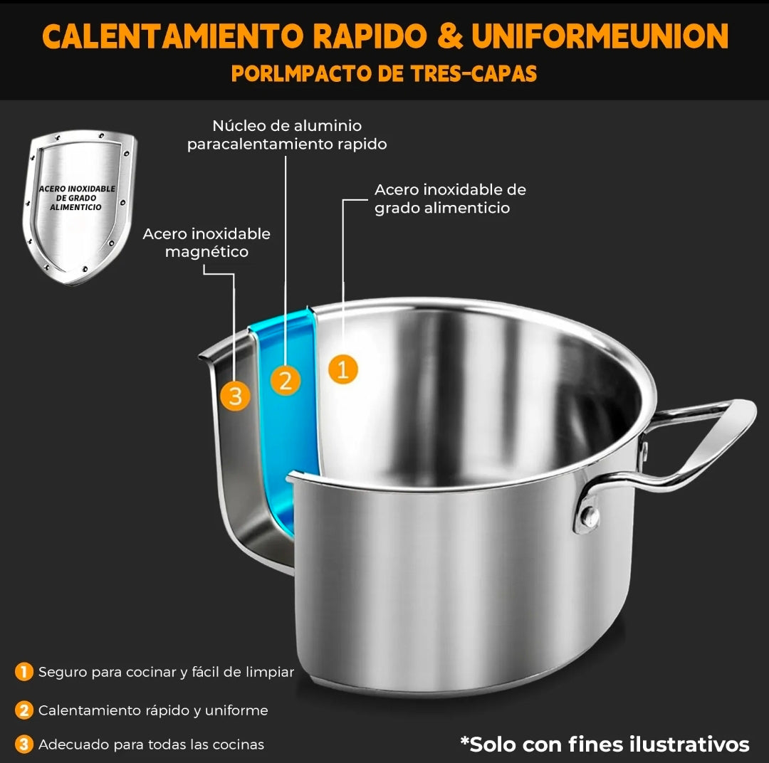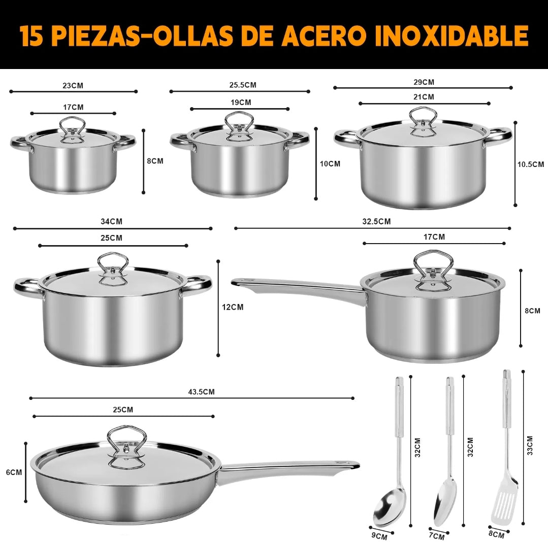 Batería De Cocina Juego De Ollas Acero Inoxidable 15 Piezas