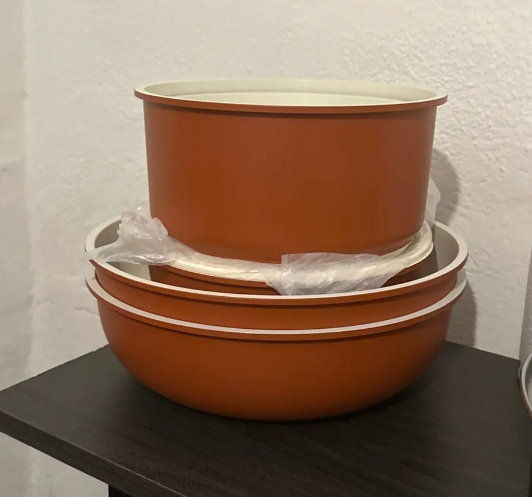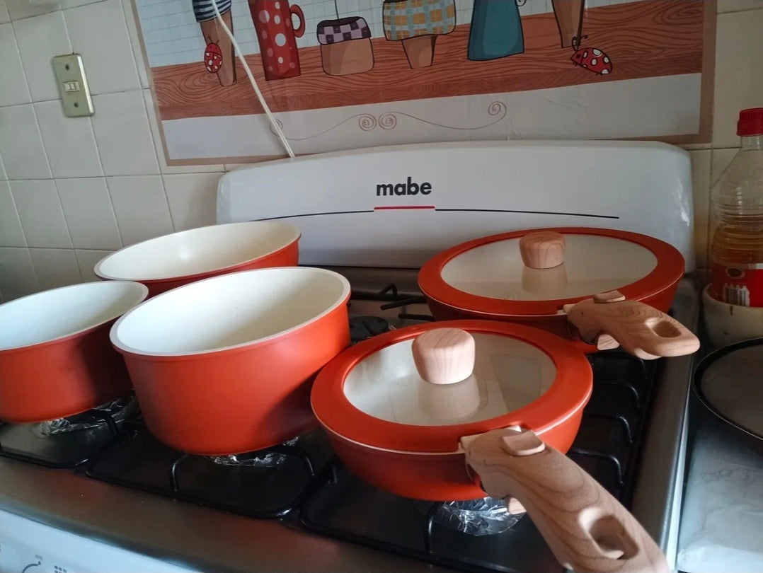 1.Revestimiento Antiadherente de Alto Rendimiento: Nuestras ollas y sartenes cuentan con un revestimiento premium que ofrece excepcional durabilidad y rendimiento. Fácil de limpiar y libre de químicos dañinos como PFOA, garantiza una experiencia culinaria más saludable.
