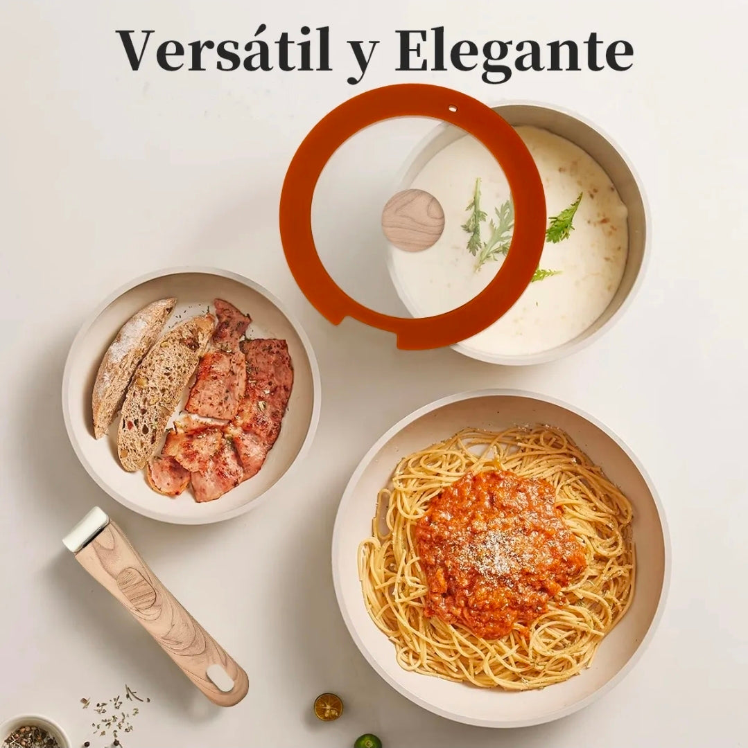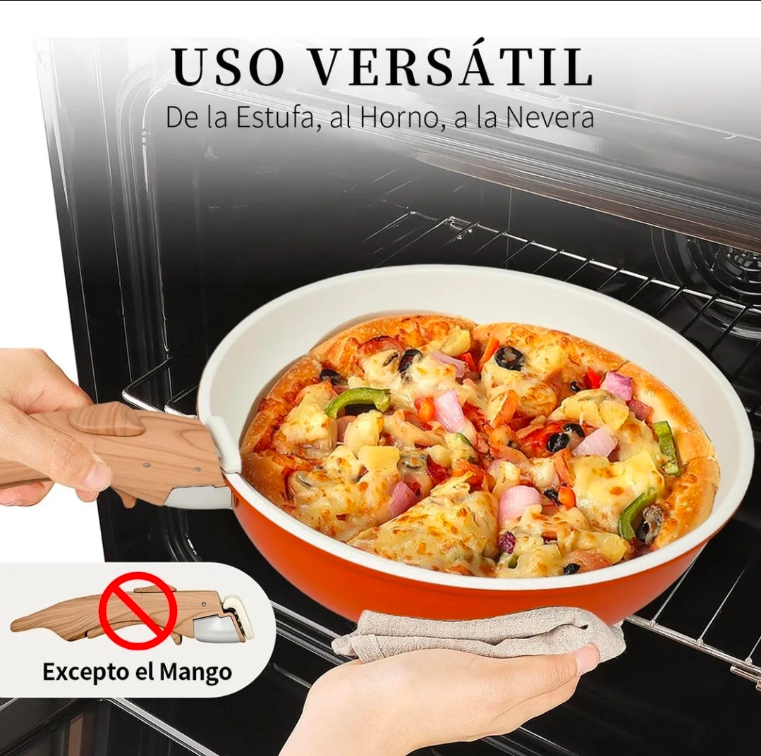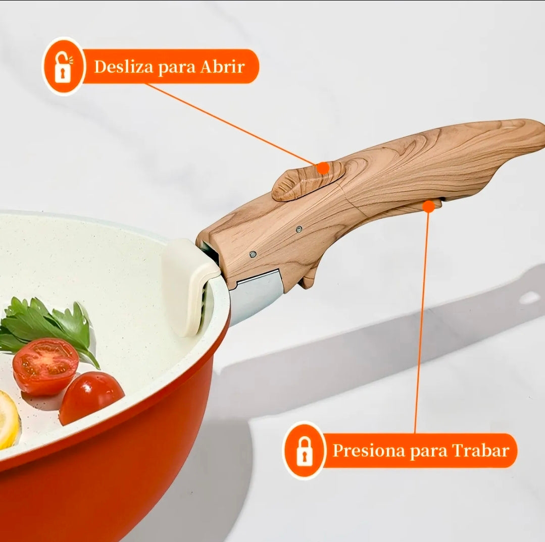 IRONHOOF - Utensilios de cocina de cerámica antiadherente, diseñados para quienes buscan una cocina saludable. Revestimiento cerámico no tóxico, seguro y duradero, compatible con todo tipo de cocinas. Su mango desmontable garantiza seguridad y facilita el almacenamiento y la limpieza. ¡Solución integral para todas sus necesidades culinarias: la elección inteligente para modernizar su cocina!