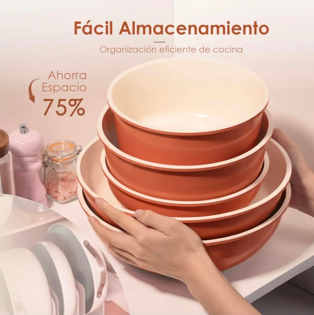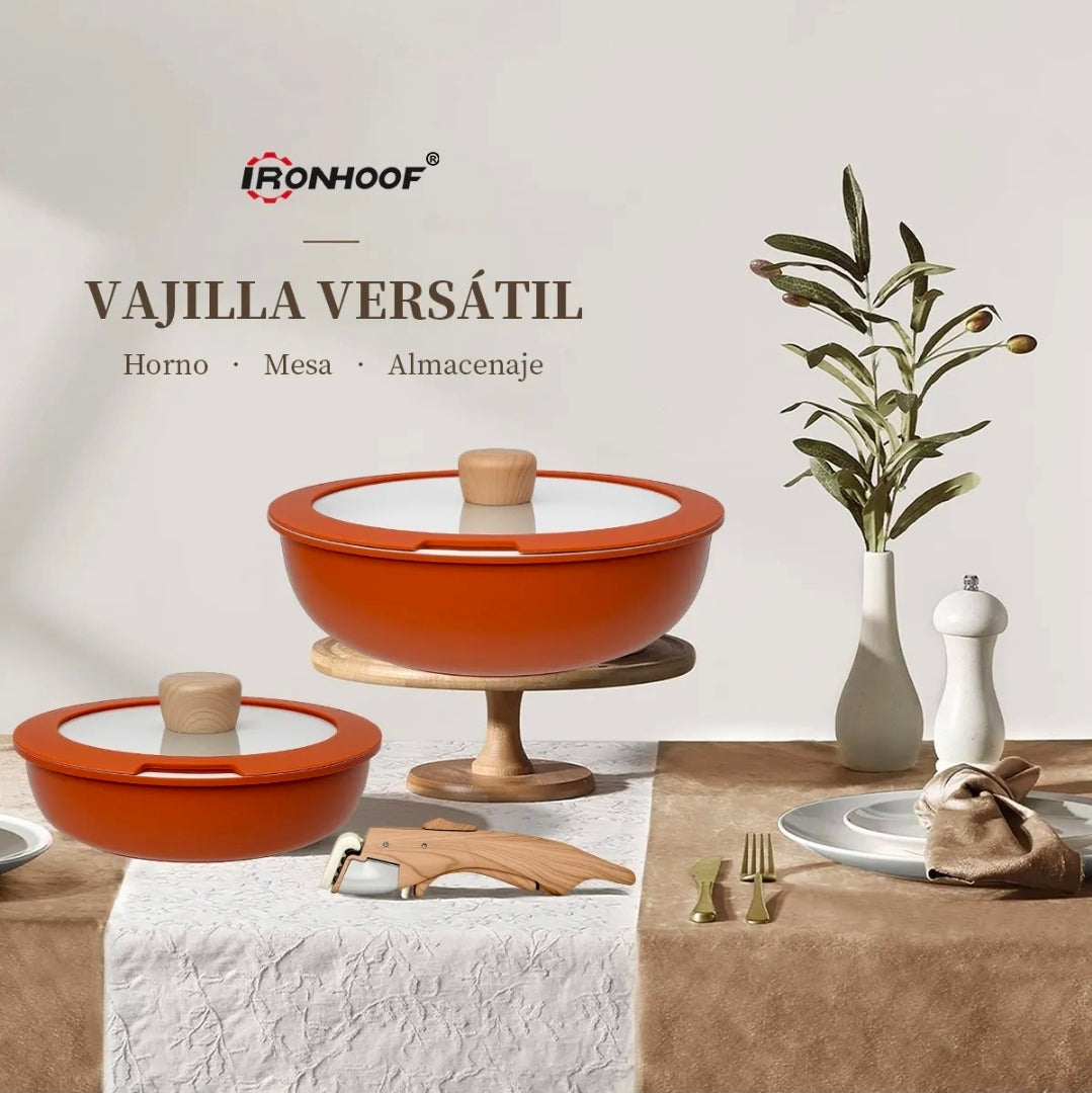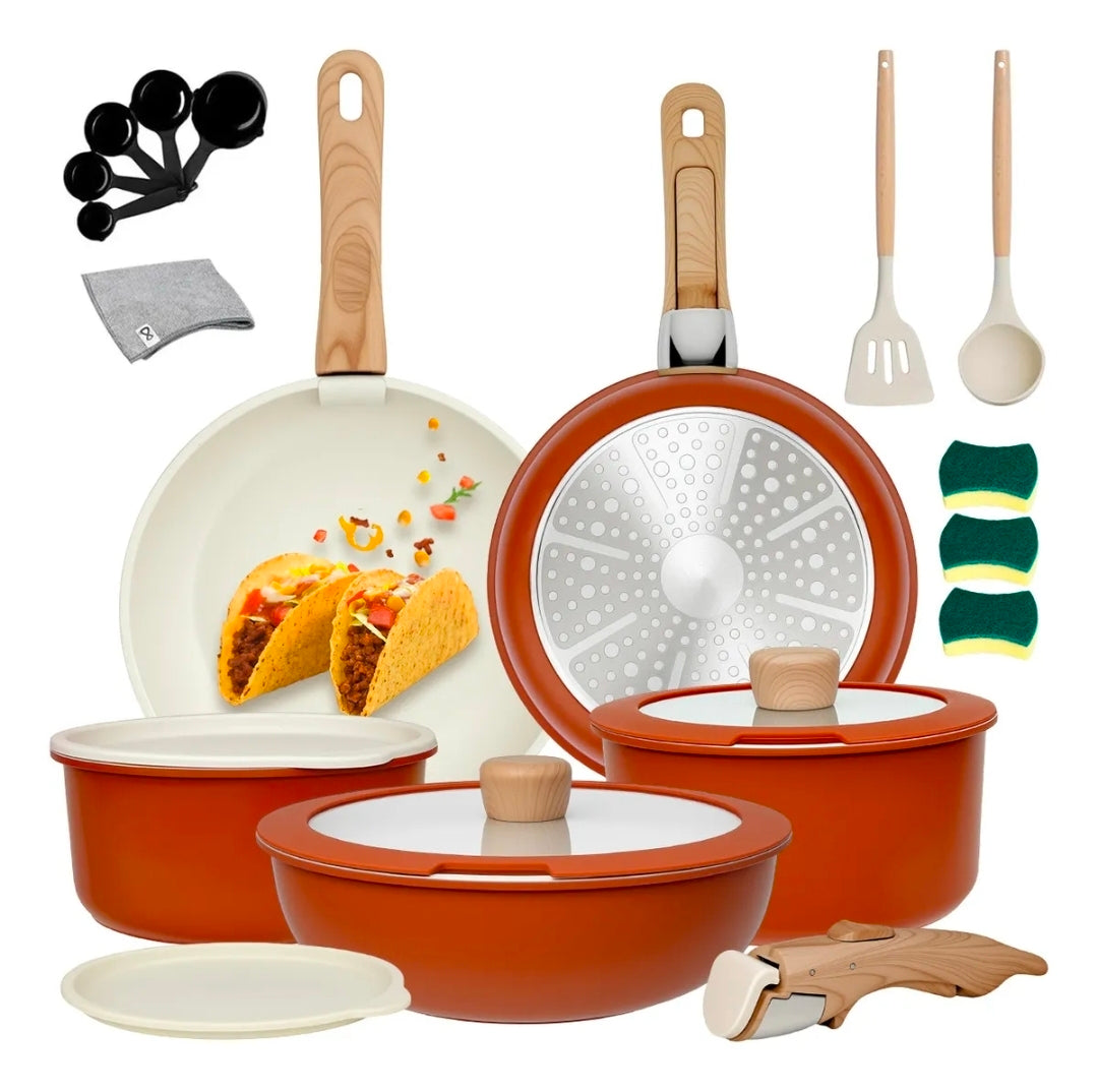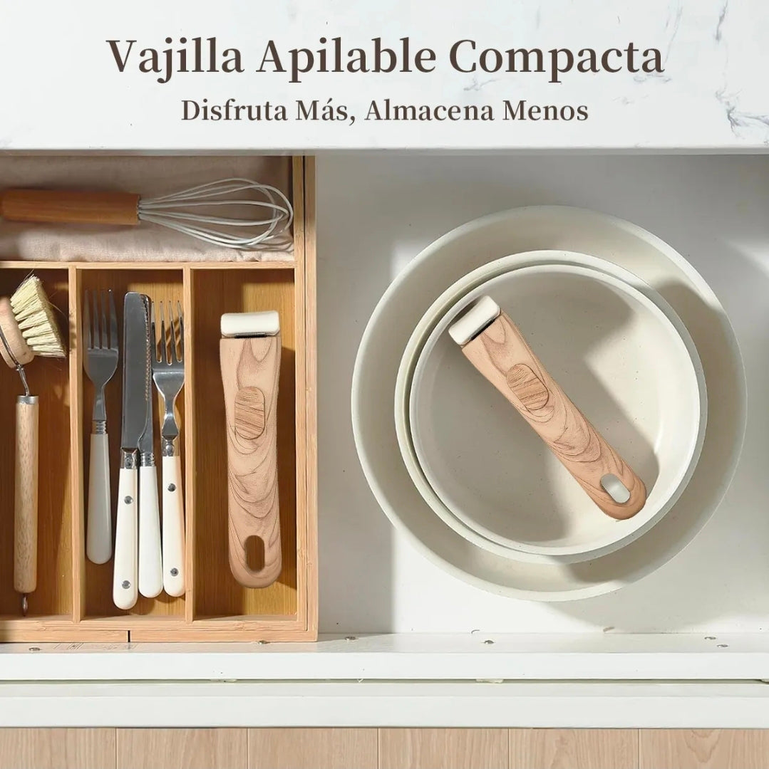 IRONHOOF - Utensilios de cocina de cerámica antiadherente, diseñados para quienes buscan una cocina saludable. Revestimiento cerámico no tóxico, seguro y duradero, compatible con todo tipo de cocinas. Su mango desmontable garantiza seguridad y facilita el almacenamiento y la limpieza. ¡Solución integral para todas sus necesidades culinarias: la elección inteligente para modernizar su cocina!