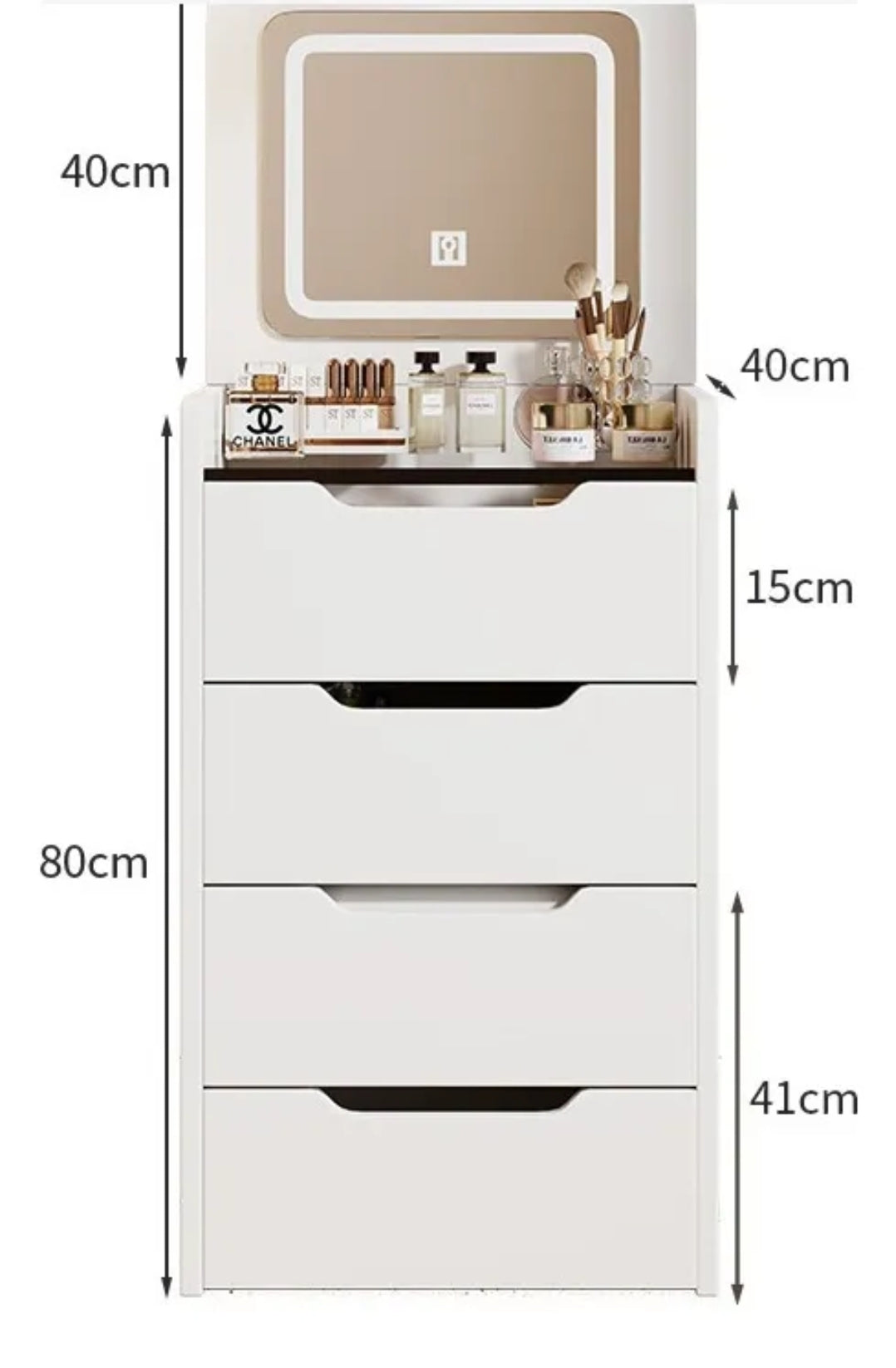 Tamaño del producto: 48 * 40 * 80 cm (altura 120 cm cuando el espejo está desplegado)