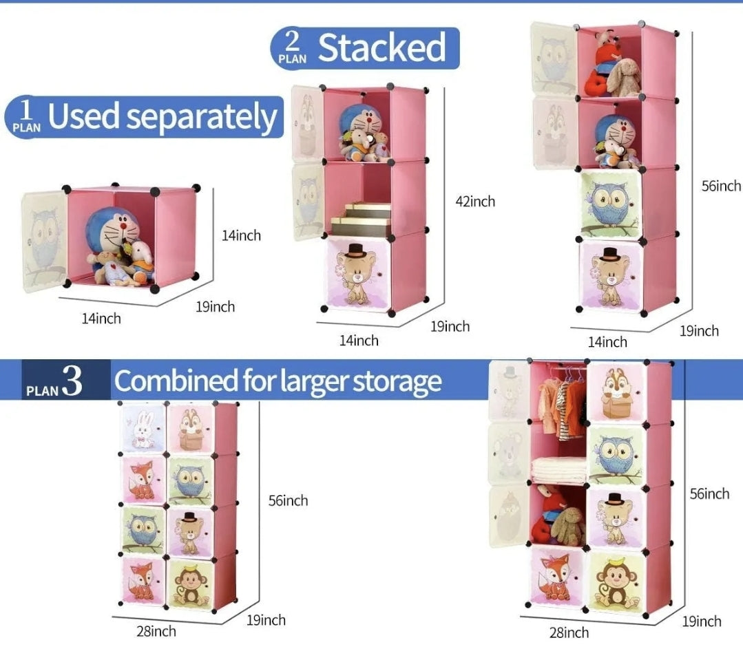 Espacio de almacenamiento para bricolaje: puede organizar libremente los cubos (147 x 75 x 37 cm) según sus necesidades, usarlos individualmente o apilarlos para obtener un espacio más grande. Además, puede decidir dónde colocar la pluma, cambiando la ubicación del área para colgar según sea necesario. Muebles infantiles seguros, los paneles son ligeros y suaves, inofensivos para los niños. El diseño simple de la puerta evita que las manos de los niños queden atrapadas.