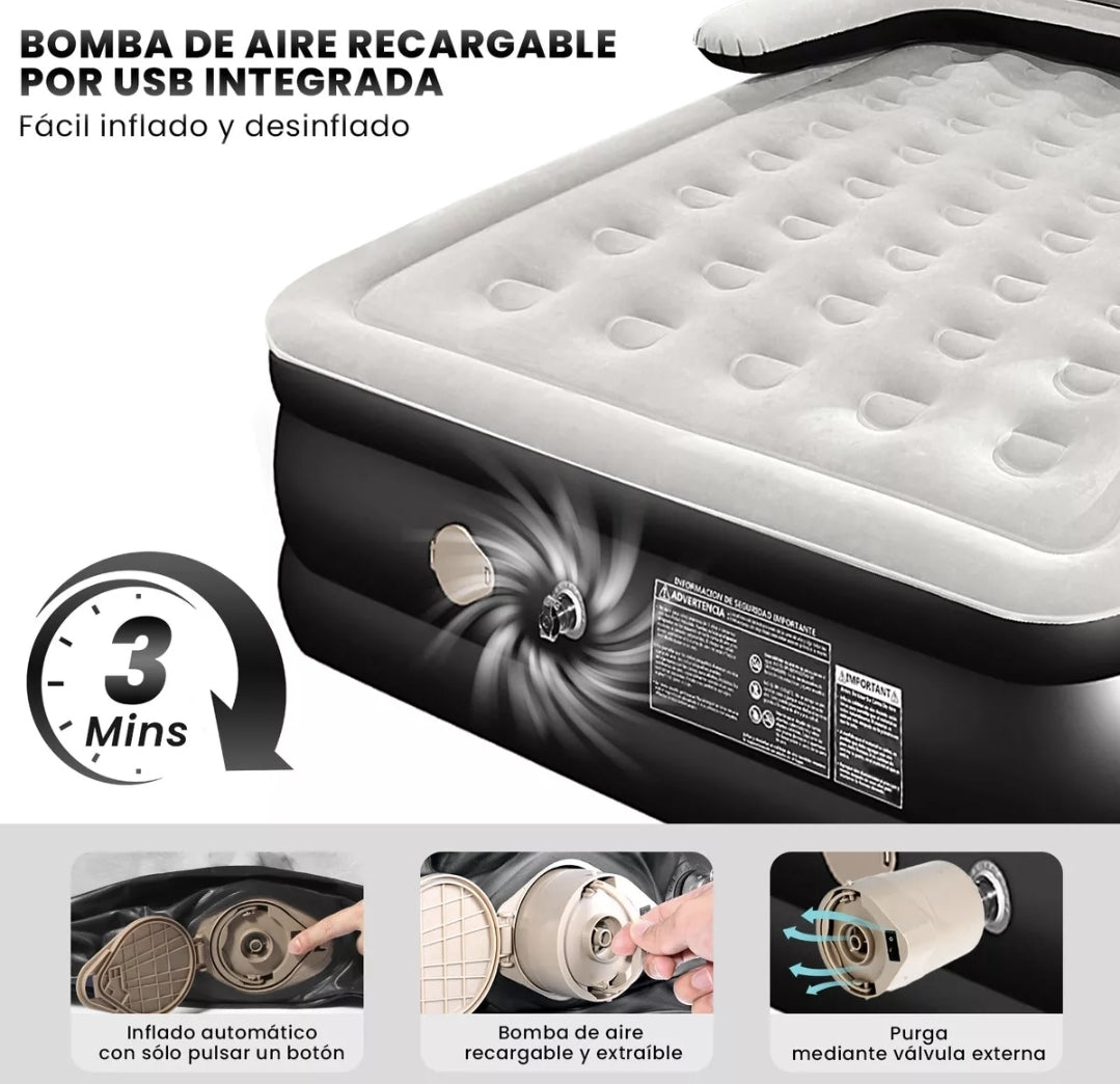Colchón Inflable Queen con respaldo y Bomba De Aire Eléctrica