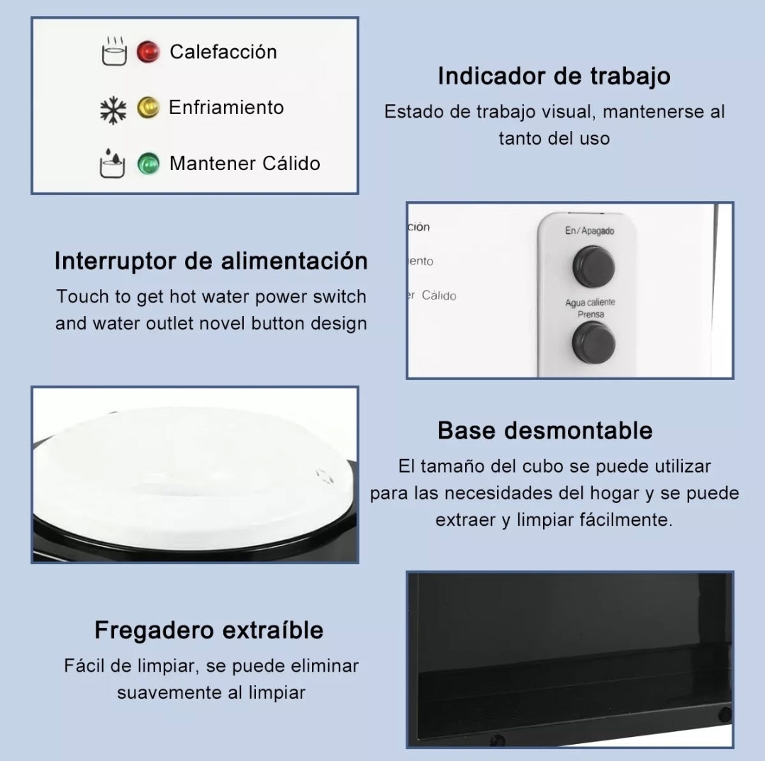 Calentamiento rápido, encendido con un botón, control automático de temperatura, diseño humanizado, empuje la taza para dispensar agua, fácil de usar.