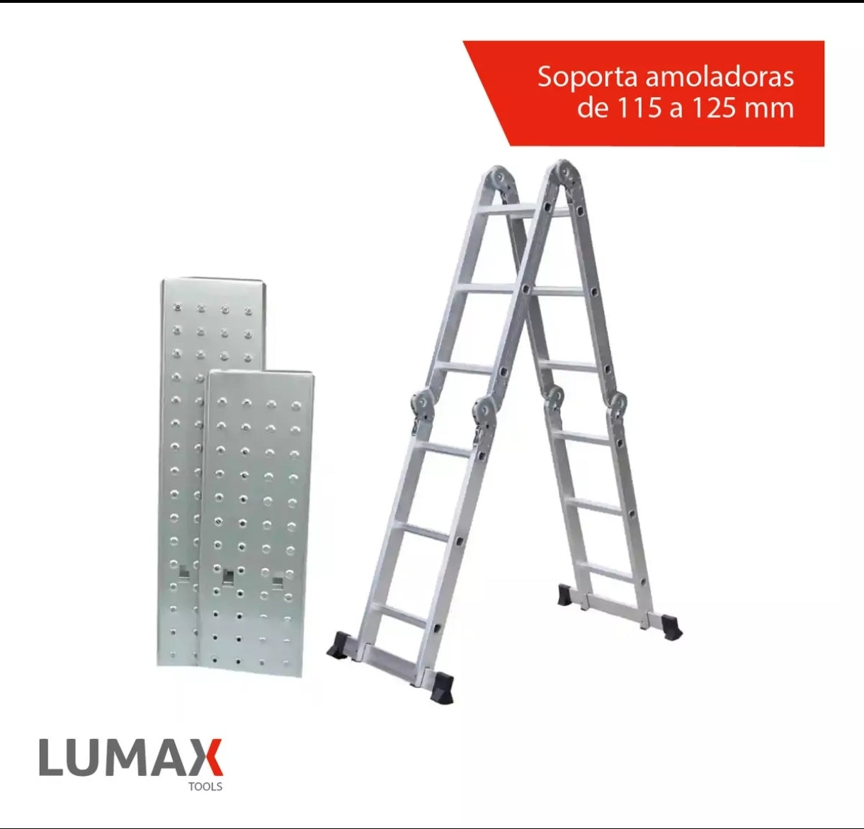 Escalera Multiposición Reforzada de 12 Escalones con Plancha. Herramienta esencial de aluminio para el hogar o lugar de trabajo, con capacidad de peso máximo de 150 kg, proporcionando resistencia y durabilidad.