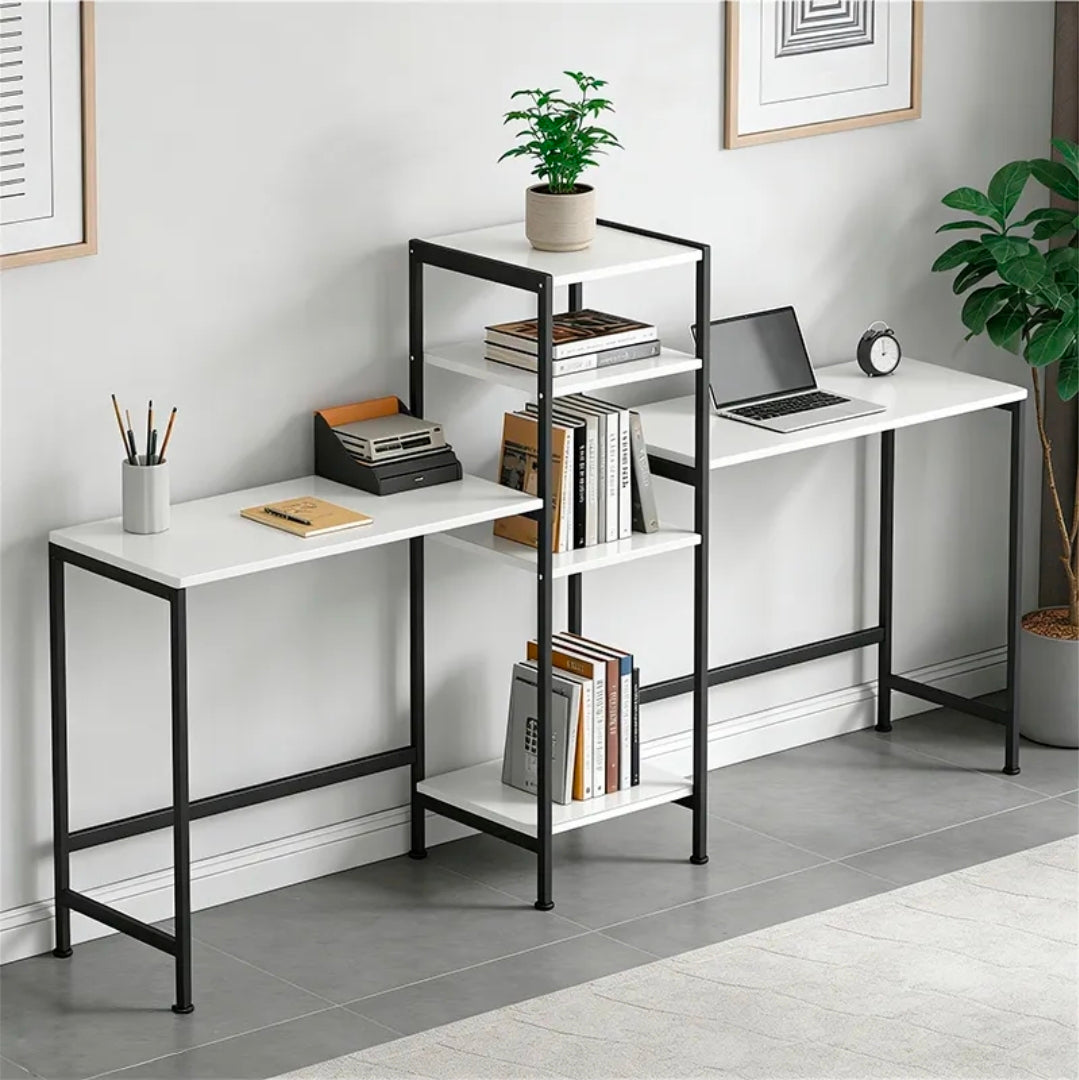-Amplio espacio de almacenamiento: Este escritorio incluye estanterías de 4 niveles, perfectas para organizar libros, documentos, material de oficina o elementos decorativos. Mantén todo al alcance y crea un entorno de trabajo más ordenado y eficiente.