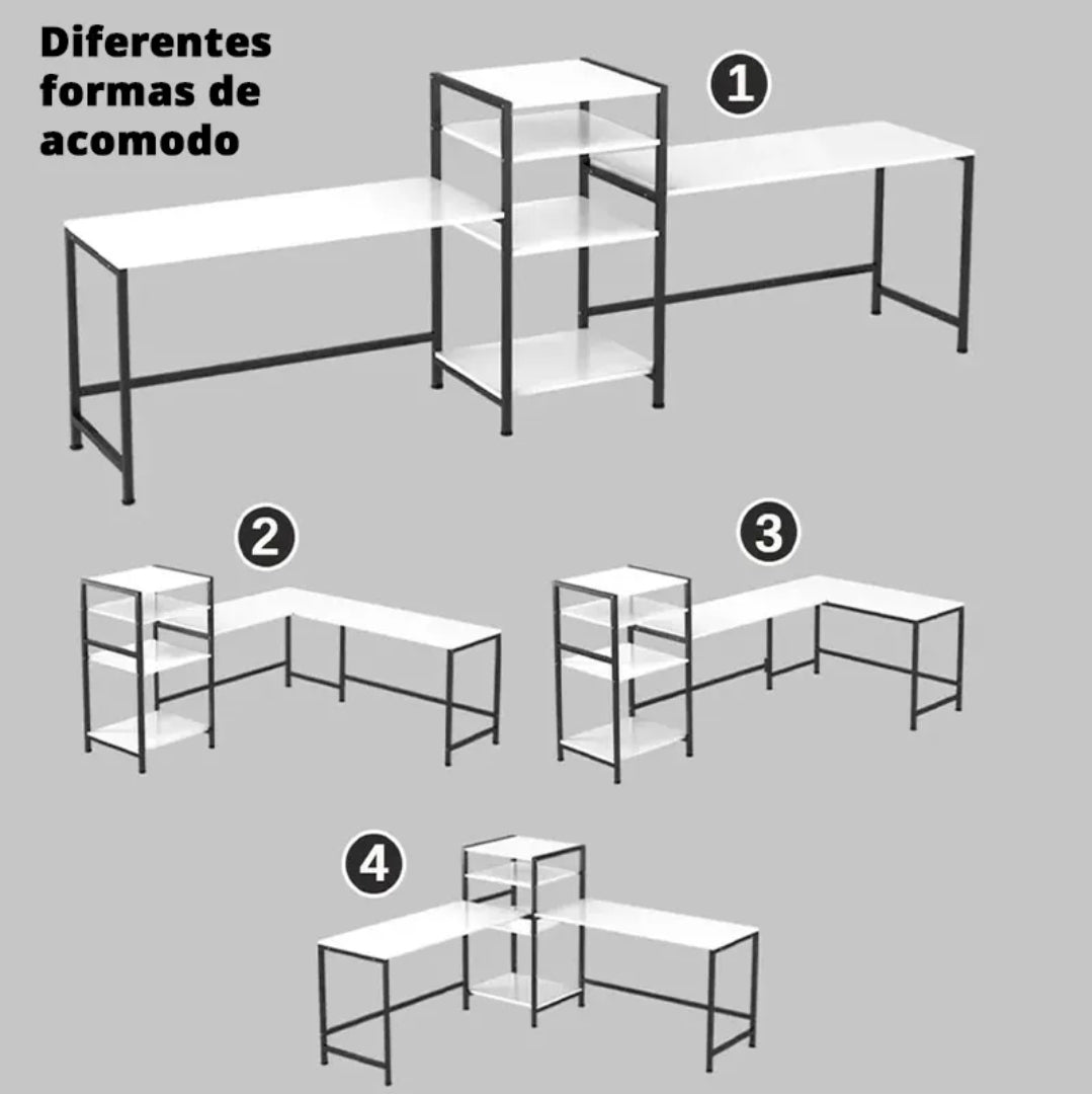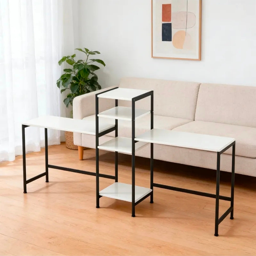 -Estante flexible y ajustable: La estantería se puede colocar en 3 posiciones diferentes, permitiéndote configurar el espacio de acuerdo a tus preferencias. Ya sea a la izquierda, derecha o al centro, adapta el escritorio a tus necesidades personales.