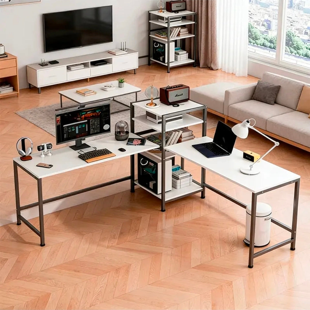 -Versatilidad de montaje ajustable: 4 opciones de montaje para adaptarse a tus necesidades. Puedes elegir entre un escritorio esquinero en forma de L para aprovechar al máximo el espacio de las esquinas o una mesa larga de 245 cm para trabajar en pareja. ¡Tú decides cómo organizar tu espacio!