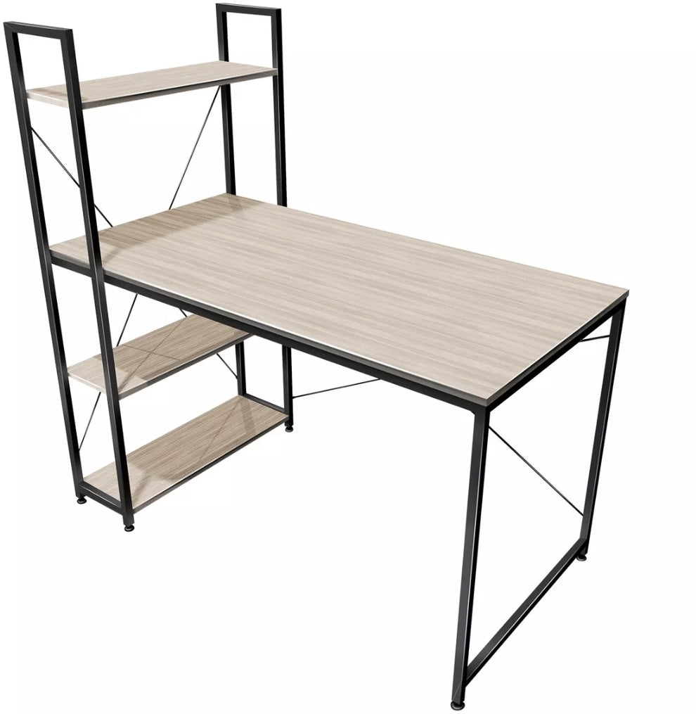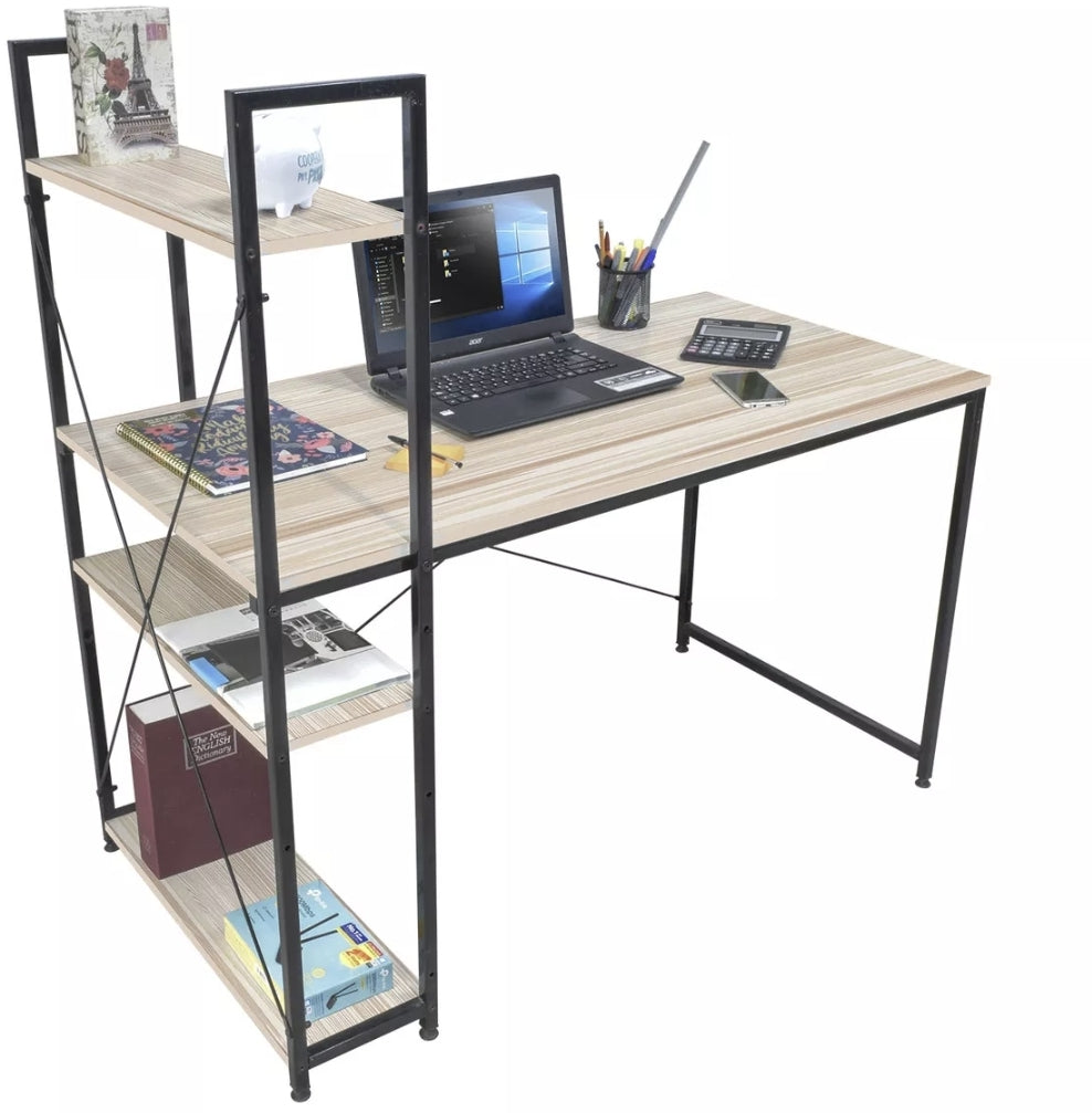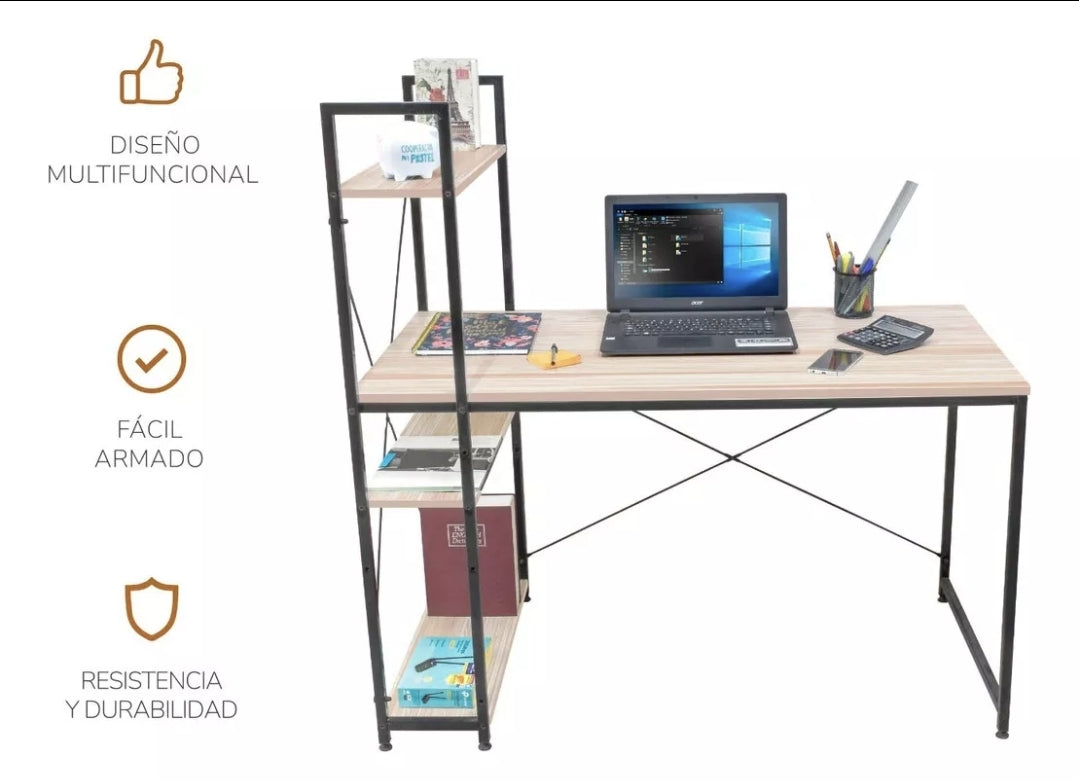 Disfruta de este práctico escritorio minimalista de estilo industrial, ideal para armar tu espacio de oficina en casa o lugar de estudio en tu hogar. Gracias a su diseño con estantes, podrás aprovechar al máximo sus espacios de almacenamiento.