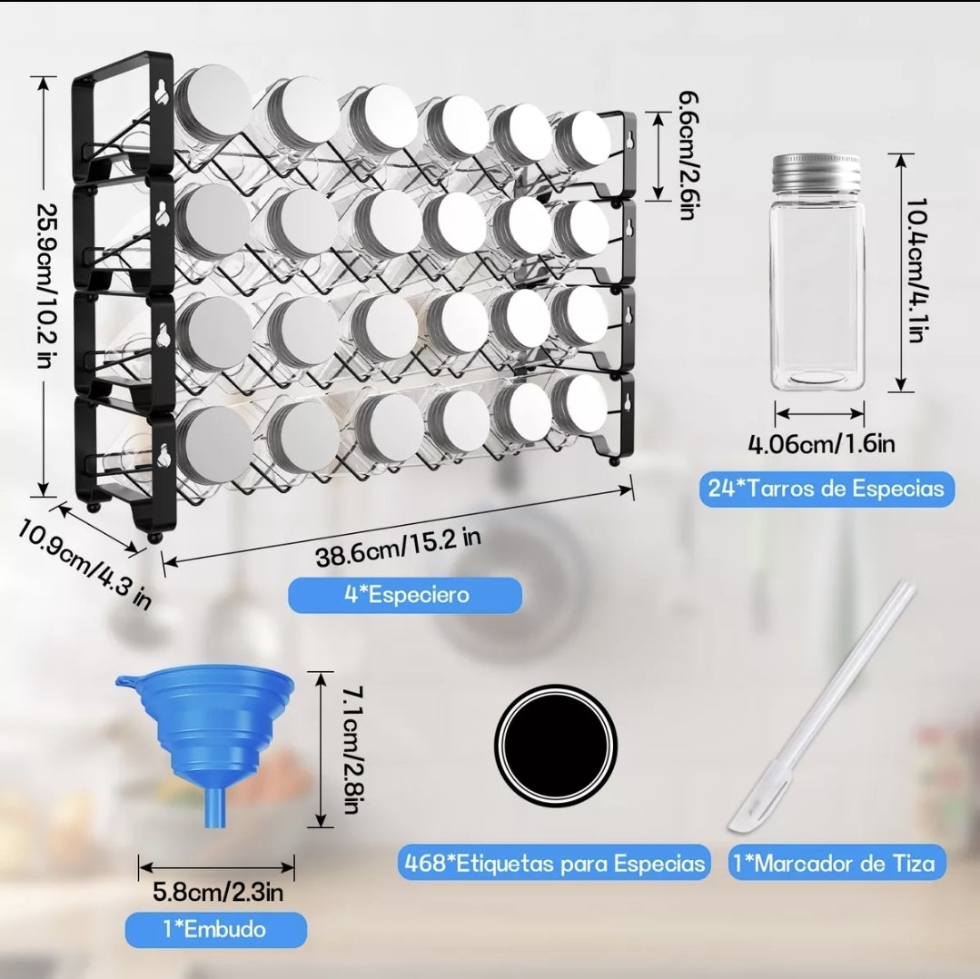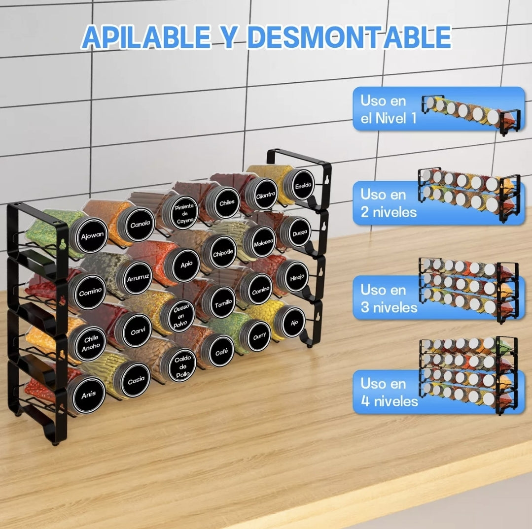 Soporte De Especias Resistente: Hecho De Hierro Resistente Y Laca Horneada, El Diseño Inclinado Hace Que Sea Fácil De Colocar Y Agarrar Rápidamente Lo Que Necesita, Convirtiendo Cualquier Desorden De Especias En Una Obra Maestra Organizada.