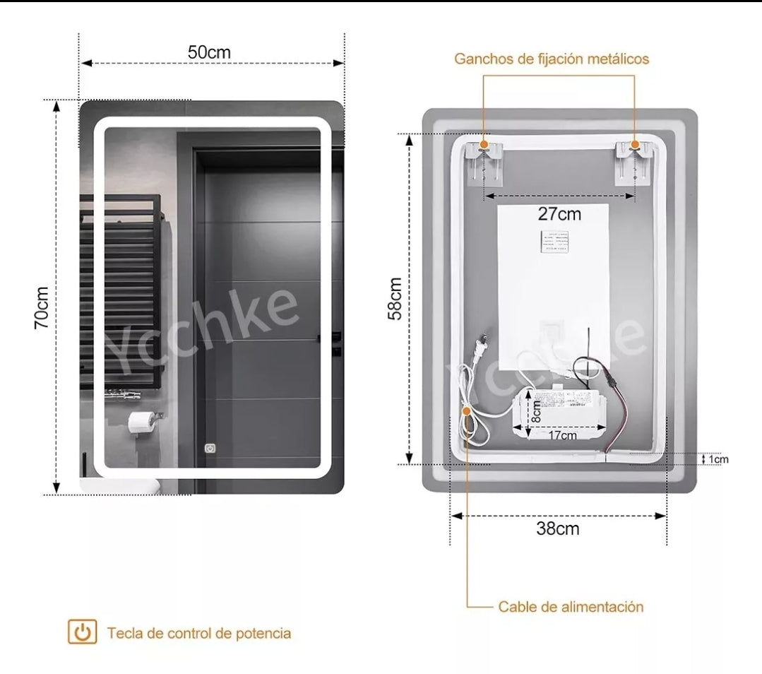 COLORES VARIABLES Y BRILLO AJUSTABLE: Este espejo iluminado ofrece versatilidad. Puedes cambiar la temperatura del color con solo tocar un botón: Cálido (3000K), Natural (4000K) y Blanco (6000K). También puedes atenuar el brillo a tu nivel cómodo. Todo esto se puede controlar fácilmente con solo tocar un botón. La función de memoria inteligente registra la configuración de iluminación y mantiene el estado de iluminación anterior después del apagado y encendido.