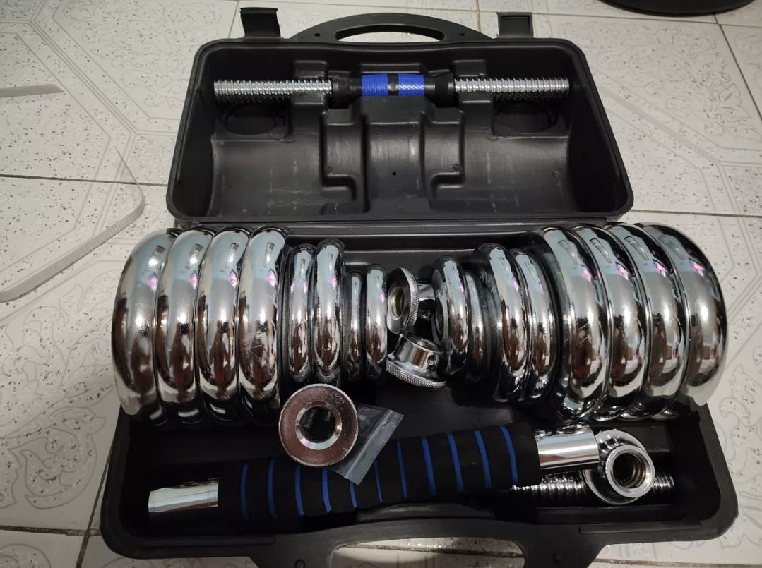 Maleta de entrenamiento completa marca Geotech Mx; con barra, discos y mancuernas de peso regulable! Calidad Premium.