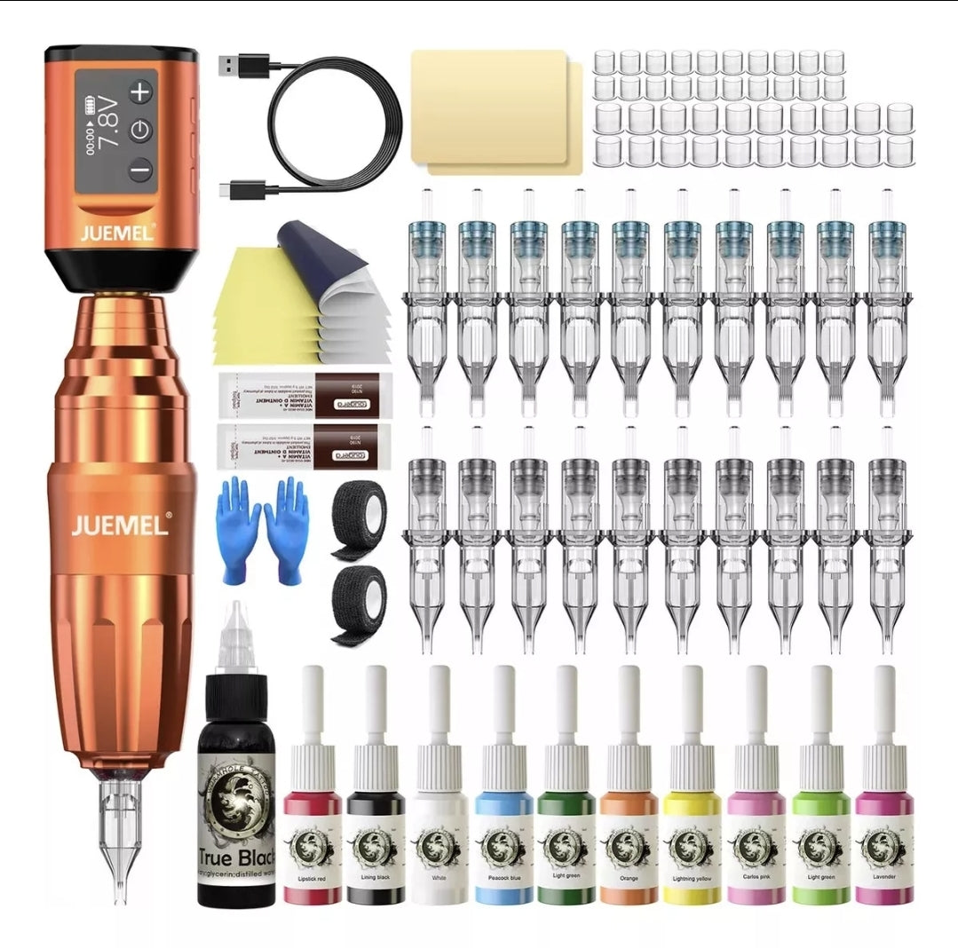 1. Las agujas para tatuajes JUEMEL se han esterilizado con óxido de etileno y las tintas son respetuosas con el medio ambiente e inofensivas para la piel humana. Se aconseja a los principiantes practicar primero en piel sintética.