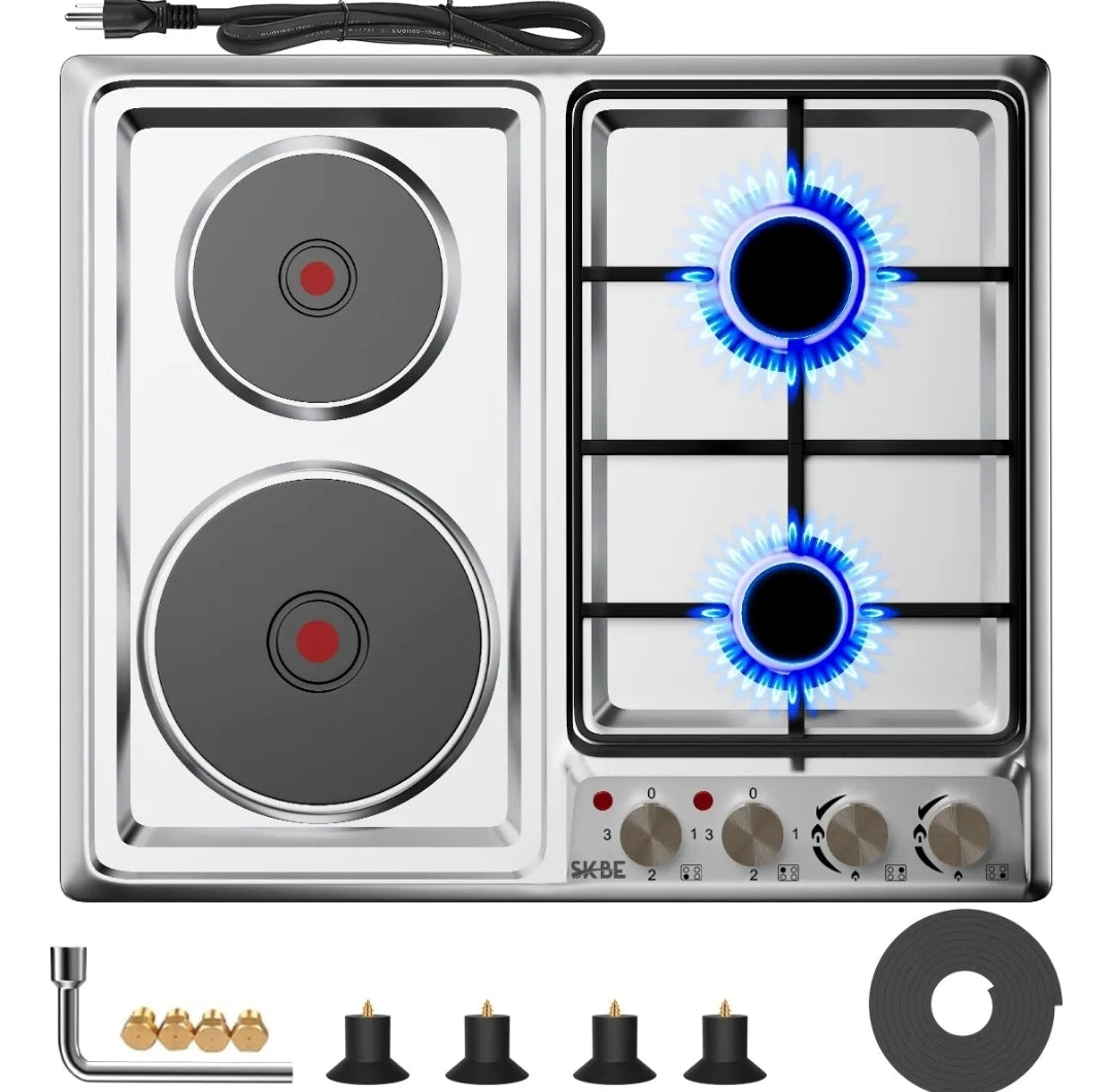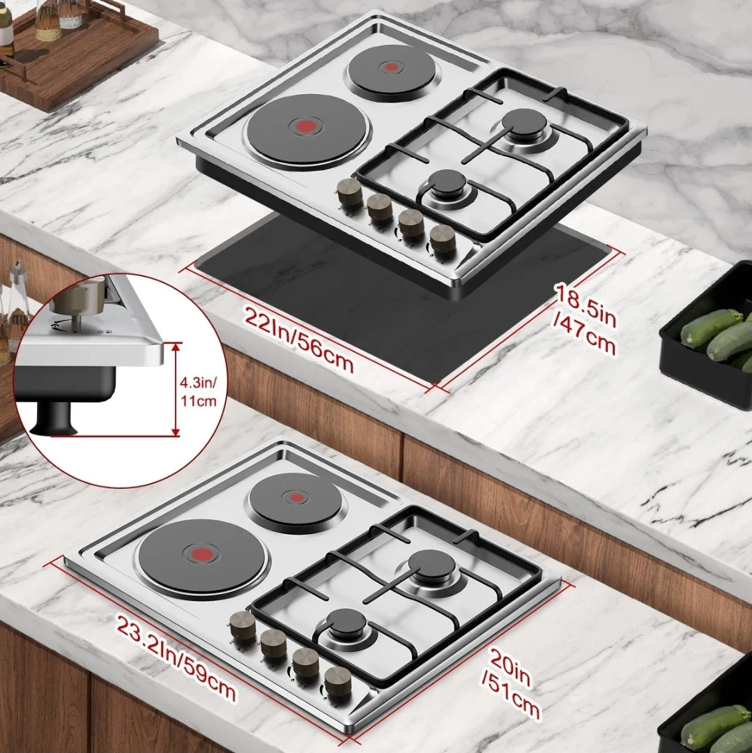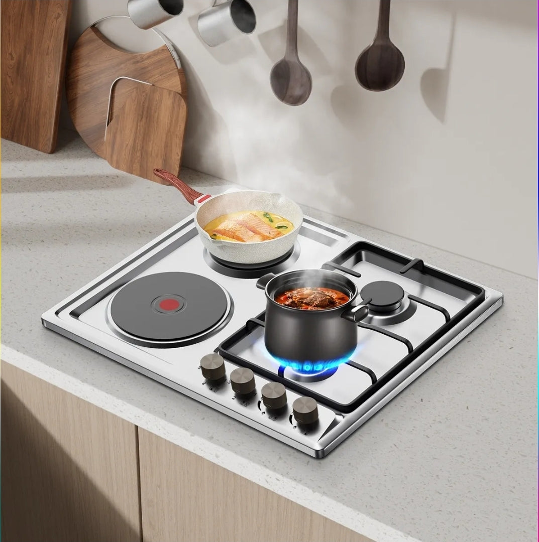 Esta cocina de gas de doble combustible está diseñada para gas natural y propano líquido. La configuración inicial es para gas natural e incluye boquillas para ambos. Ideal para múltiples usos, como autocaravanas, cocinas familiares ligeras, cocinas pequeñas y casas móviles.