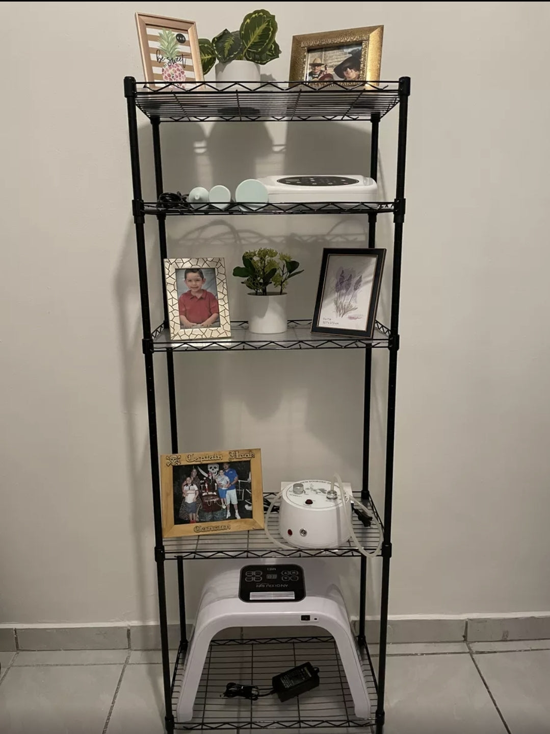 Fácil de montar No se requieren herramientas para instalar el estante de almacenamiento. Simplemente sujete el clip al poste a la altura deseada y deslice el poste hasta que el estante de metal quede firmemente sujeto al clip. Solo toma 10 minutos instalar la estantería de alambre. Estantería metálica para almacenamiento, estantería de alambre.