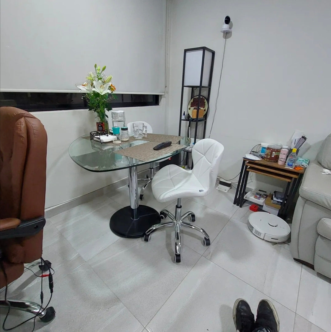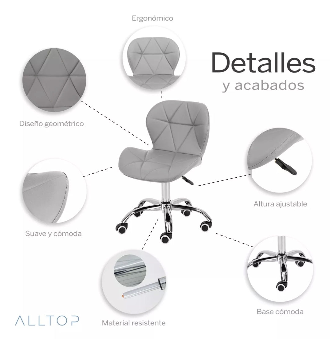 Las ruedas te van a permitir moverte y limpiar fácilmente tu espacio. Podrás trasladarla sin dificultad cuando lo necesites. Además, al ser giratoria te permitirá rotar el asiento 360º sin la necesidad de cambiar de posición o moverte del lugar en donde estás.