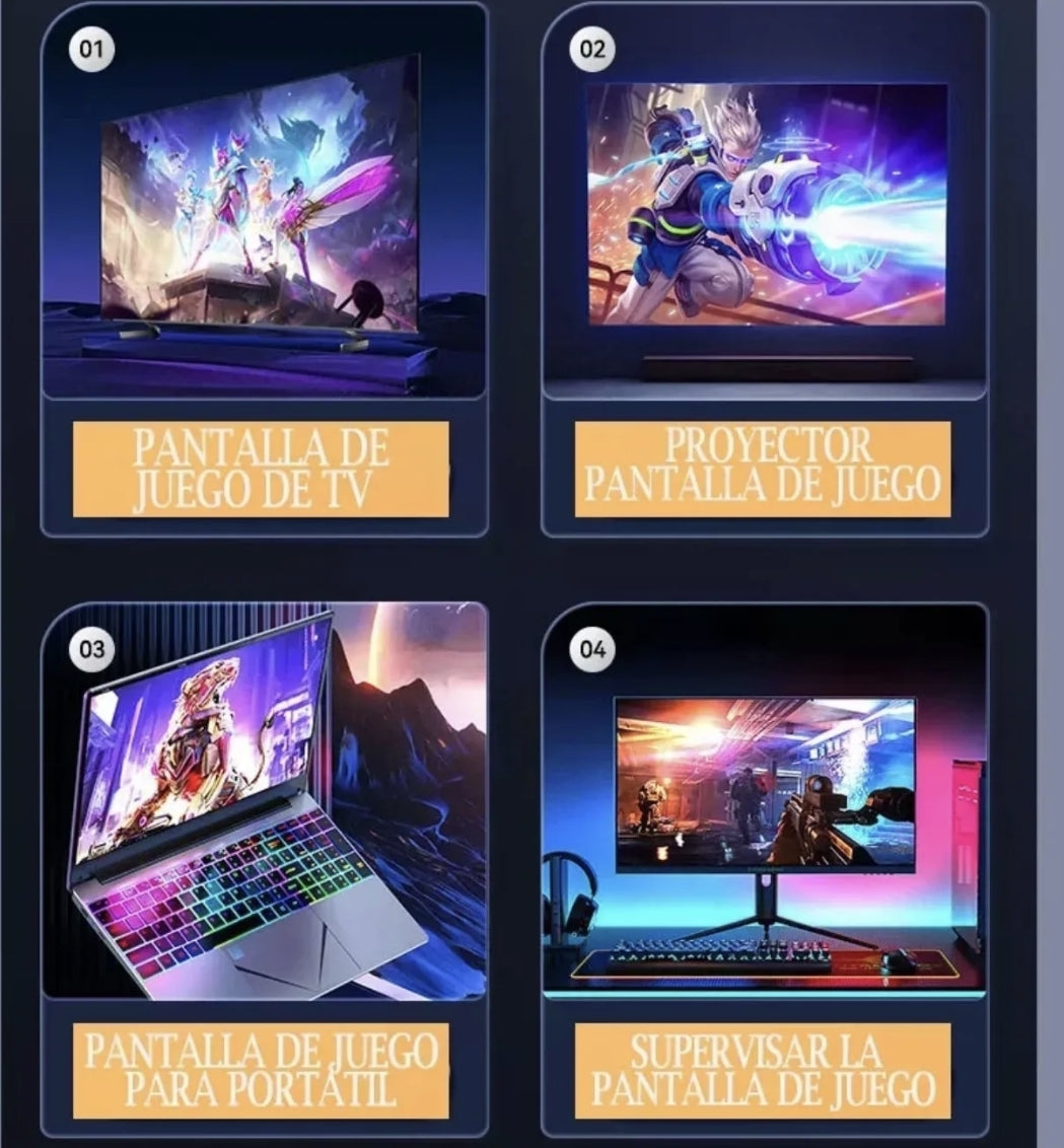 Sumérgete en la experiencia de juego definitiva con el 4K GAME STICK. Este producto incluye todo lo que necesitas para disfrutar al máximo: 2 controles inalámbricos, cable de alimentación, extensión HDMI, receptor Bluetooth y un instructivo detallado. Con una calidad de imagen excepcional, podrás disfrutar de tus juegos favoritos con una resolución impresionante. Además, su diseño compacto y portátil te permite llevarlo a donde quieras sin complicaciones.
